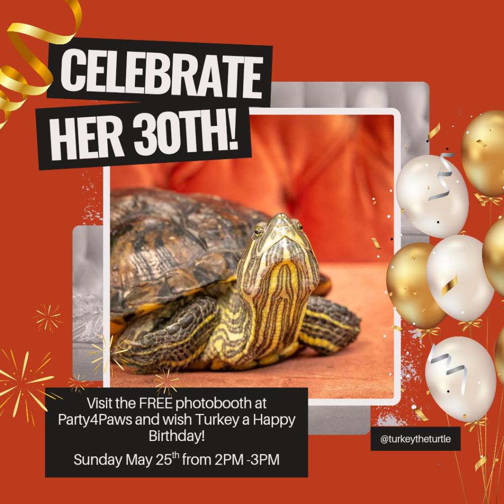 Join us this Sunday at Party4Paws in Trinity Bellwoods Park in Toronto from 2-3 for a special photobooth to celebrate Turkey’s big 3 0!
